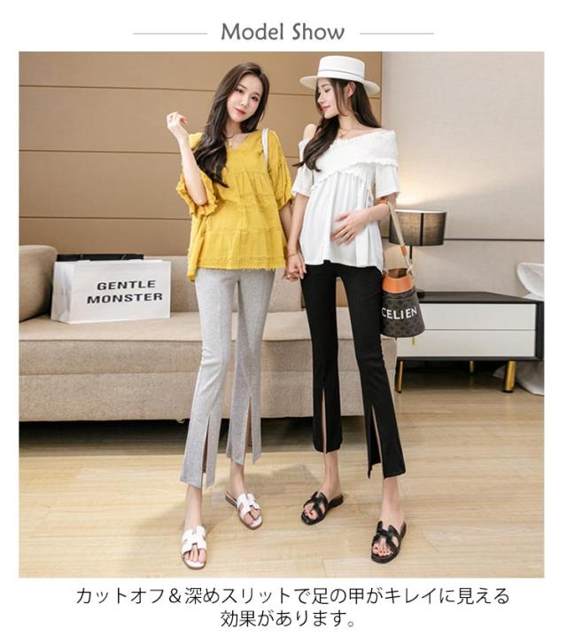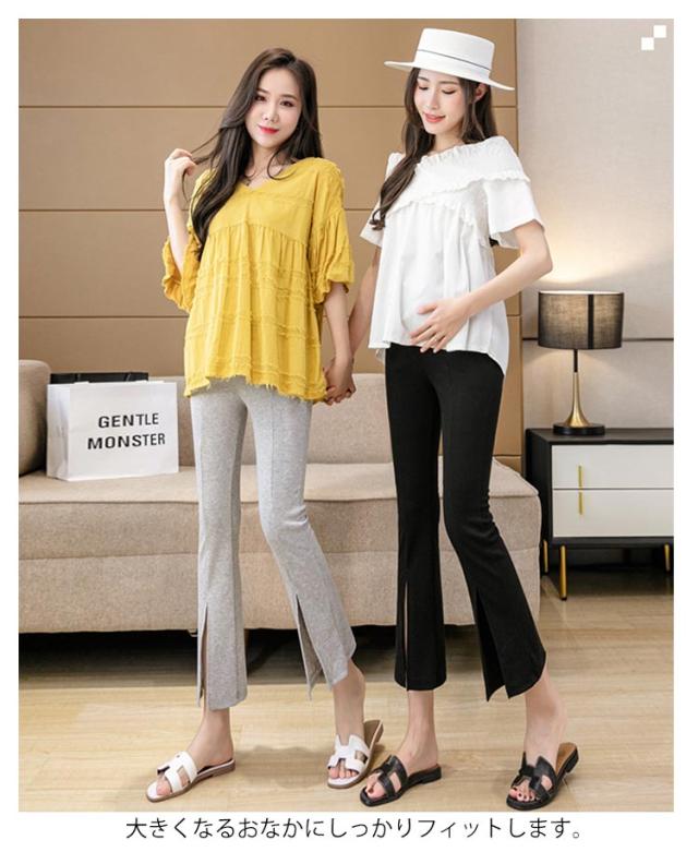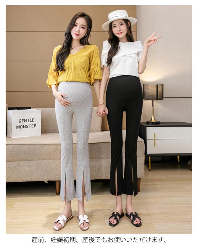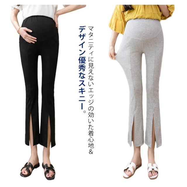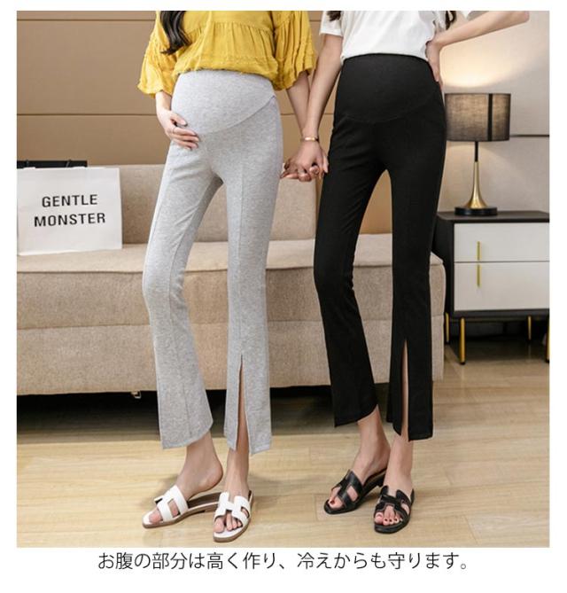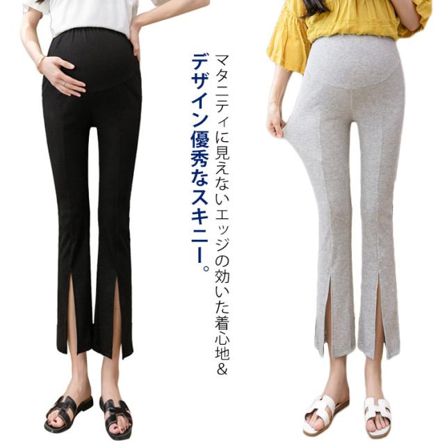 スリット 妊娠 マタニティパンツ マタニティ フロントスリット パンツ ズボン マタニティ 9分丈 ボトムス マタニティ 春 夏 秋 カジュアル キレイめ 伸縮性 産前産後
