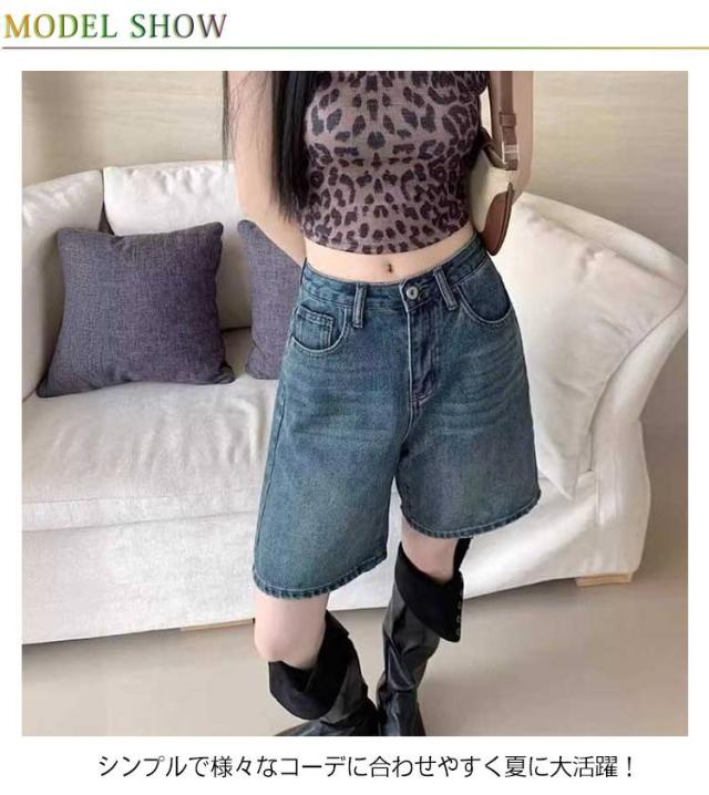 ハーフパンツ 五分丈 ジーンズ 膝上丈 デニムパンツ ジーパン ショートパンツ 短すぎない ショーパン ズボン 短パン 半パン ストレートパンツ