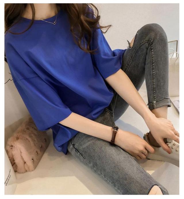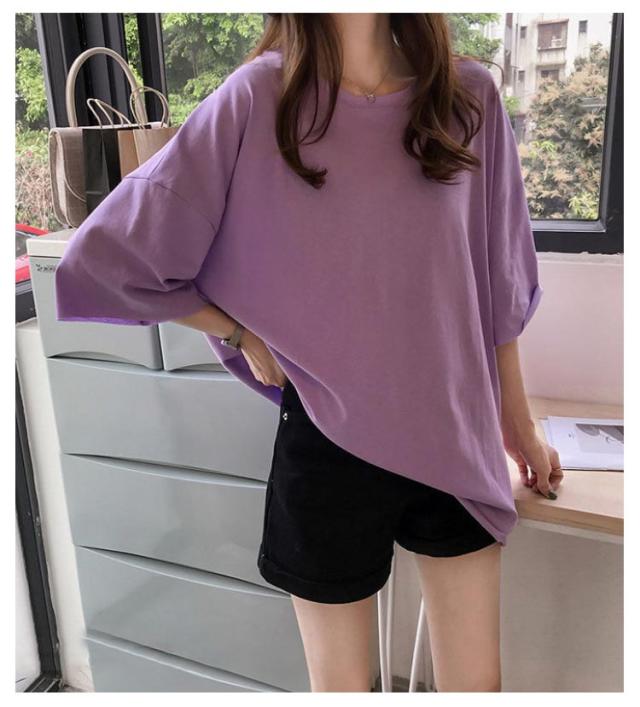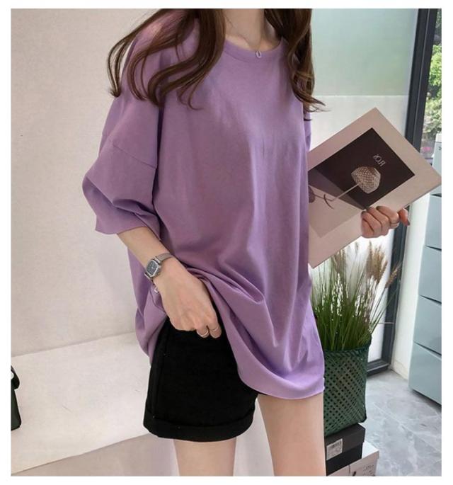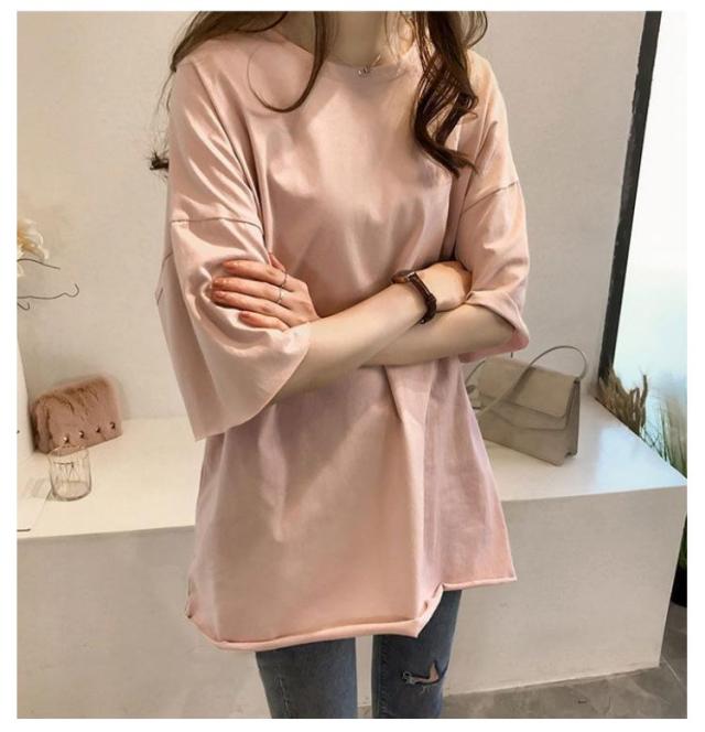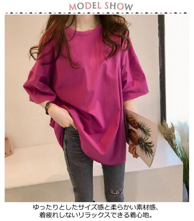 ビッグシルエット ゆるT Tシャツ 無地Tシャツ 夏 ロングTシャツ ゆったり サイズ 大きい 春 半袖 体型カバー 無地 トップス tシャツ レディース 薄手 女性 5分袖 プルオーバー シンプル 通勤 通学