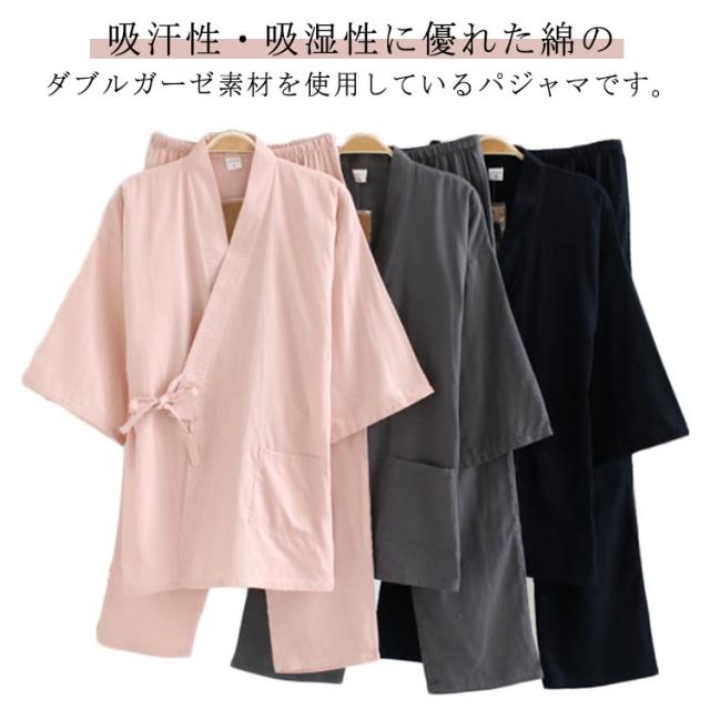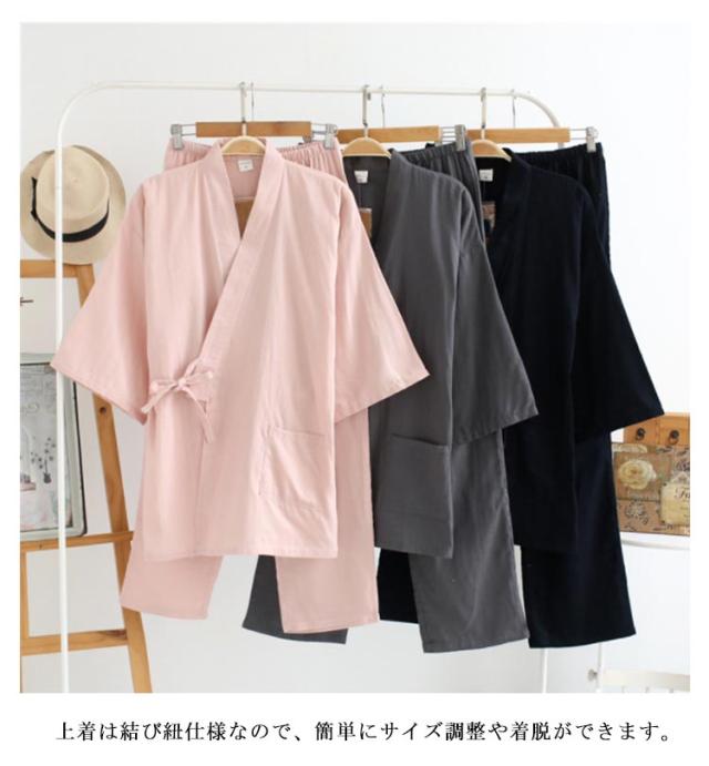 浴衣 甚平風 和服 メンズ パジャマ 夫婦 ユニセックス 甚平 カップルペア セパレートパジャマ ルームウェア レディース ナイトウェア 七分袖 トップス+パンツ 綿 寝巻き 薄手素材 ガーゼ メンズ 敏感肌 部屋着 入院 通気性良く涼しい