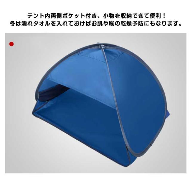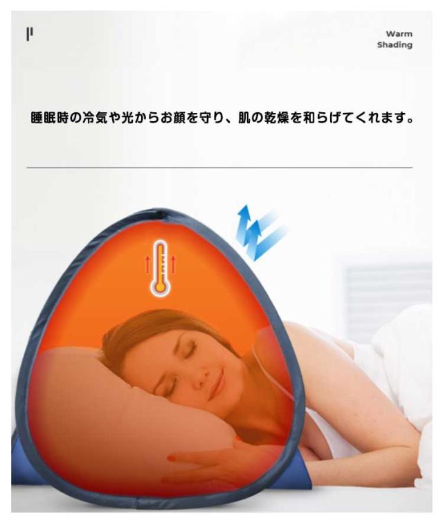 | 防水・保温両用ミニテント 携帯電話収納袋が付属しており、上部のジッパーを開けて携帯電話を入れることができます。 日よけだけでなく、風よけや保温にも役立ちます。 睡眠時の冷気や光からお顔を守り、肌の乾燥を和らげてくれます。 テント内両側ポケット付き、小物を収納できて便利!冬は濡れタオルを入れておけばお肌や喉の乾燥予防にもなります。 | |