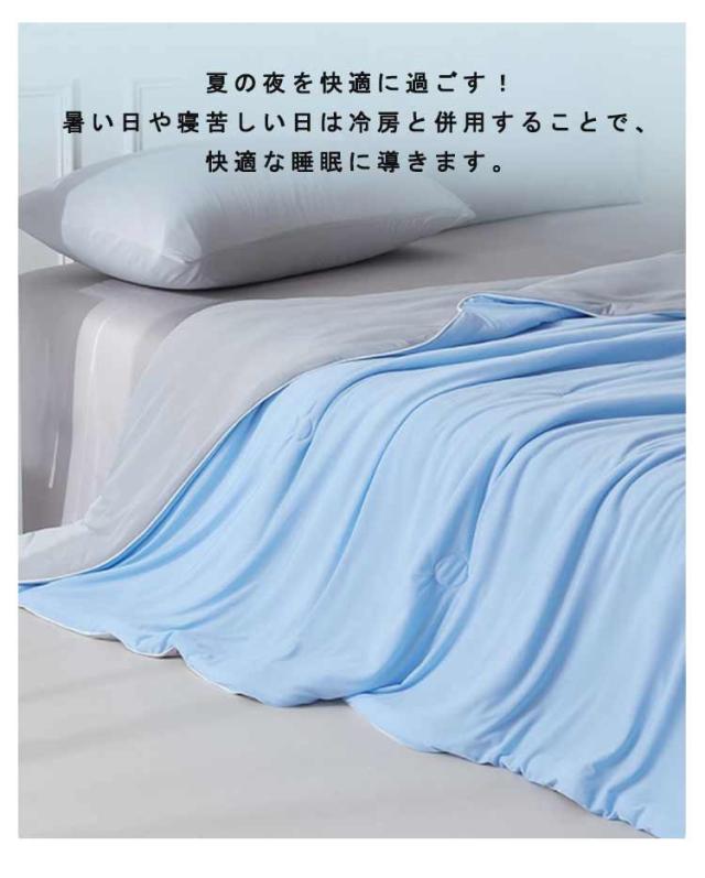 | 暑くて寝苦しい時も冷たくないの涼感で快適な寝心地!涼しく快適に眠れる肌掛け布団。150×200cm(セミダブル/シングル) 夏の夜を快適に過ごす!暑い日や寝苦しい日は冷房と併用することで、快適な睡眠に導きます。 抗菌・防臭・防ダニ加工・低アレルゲンを実現。細菌の増殖を抑制し、防臭効果を発揮! 夏の気になる汗や皮脂のニオイも気にならない!清潔快適にお過ごし頂けます。 アイスクリームのようなひんやり、生地の熱分散が速く、サラッととした肌触りです。 洗濯機で洗えるので衛生的な布団、吸水速乾性にも優れ、汗をかいてもサラッと快適です。 | |