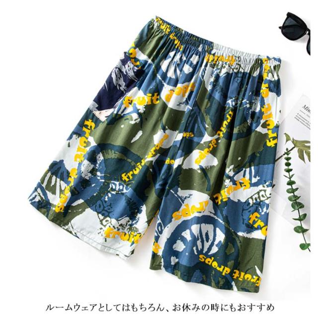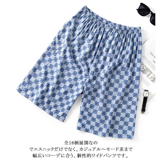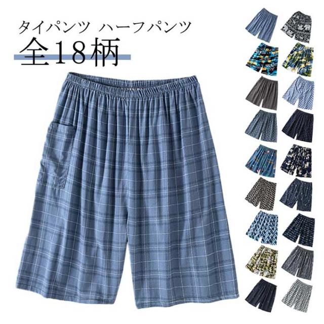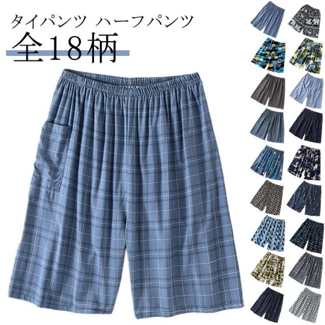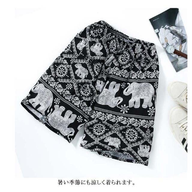 ルームウェア ハーフパンツ ショートパンツ アジアンパンツ メンズ ぞう 象柄 タイパンツ 幾何柄 総柄パンツ ゾウ エスニックパンツ ハーフ丈 大きいサイズ 夏 部屋着 パジャマ ボトムス 薄手 リラックス おしゃれ チェック柄