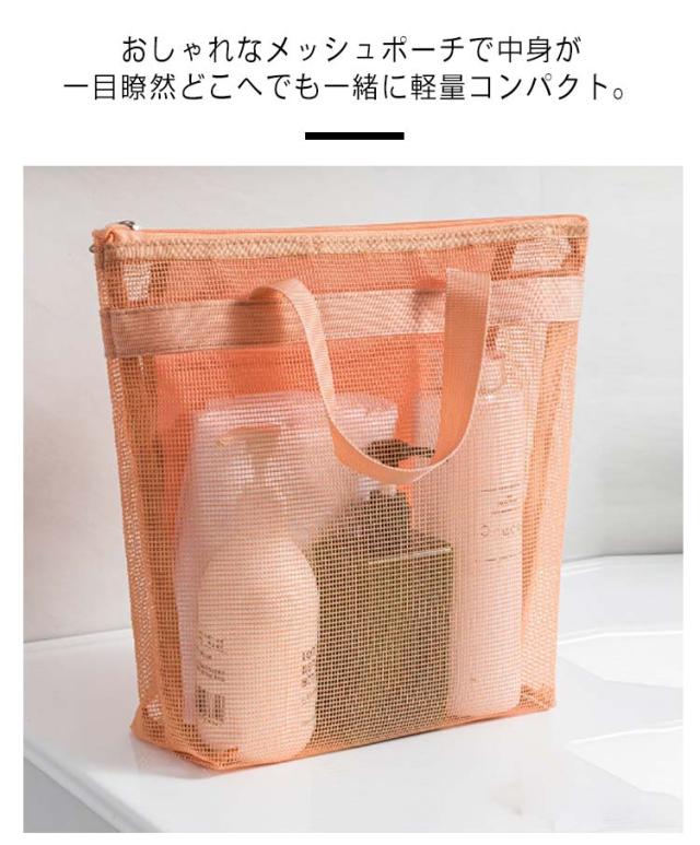| スパや温泉、ビーチなどで大活躍のメッシュバッグが登場。 バッグ全体に編み目を施したメッシュ仕様。通気性に優れ、乾きが早い!汚れてもお手入れラクラク。 化粧品、スキンケアからネイルケアまで細かな身の回り品も一緒に収納しちゃえます。 とても軽いので畳んで収納すれば旅行や出張などにも手軽に持って行けます。 温泉、ご旅行、ジム、入院時のベットサイドなどなどあらゆるシーンで大活躍。 | |