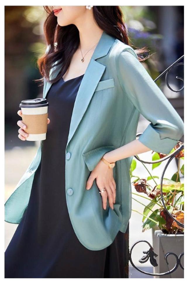 | 透け感のある素材でトレンド感たっぷり!カジュアルテイストのシアージャケット。 しなやかな風合いの旬のシアー素材で、女性らしいこなれ感のあるビッグシルエットに。 べたつかずサラリとしているので肌触りもよく、春夏の羽織りに最適。 ハリがあるので、まくった袖が落ちてこないのも高ポイントです。 テーラードジャケットのデザインはデイリーやオフィス、学校行事からお呼ばれまで幅広く着用いただけます インにシンプルなシャツを合わせるだけで一気にお洒落なスタイルに。スニーカーと合わせてカジュアルに着崩すのもおすすめです。 | |