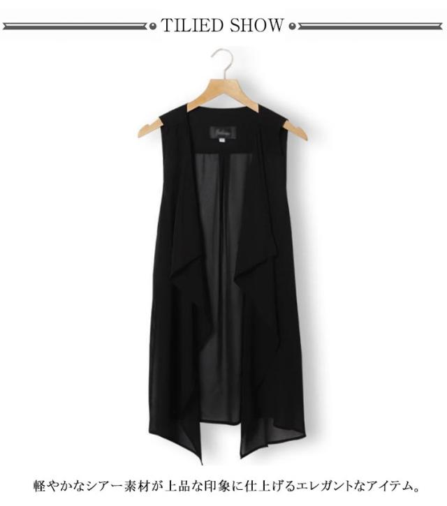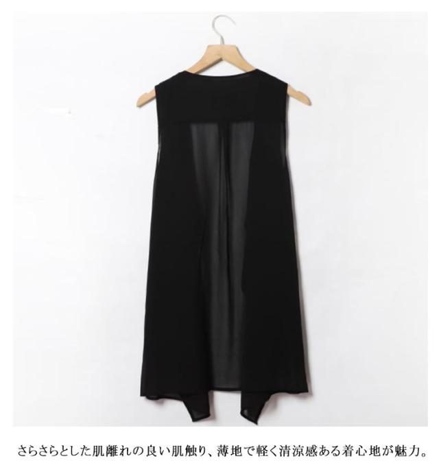 春 シアー ベスト 秋 前開き カーディガン ノースリーブ ジレ 夏 トップス 薄手 ジレ ロング 透け感 大きいサイズ カジュアル ロングジレ アウター 羽織り オフィス レディース きれいめ 軽量 黒 レイヤード