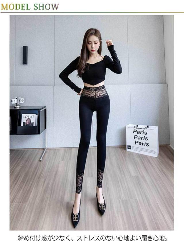 薄手 レディース 2枚セット 裾レース レギンス 夏 レギンス ハイウェスト レース レギンスパンツ レギパン 夏用 UVカット ストレッチ インナー 部屋着