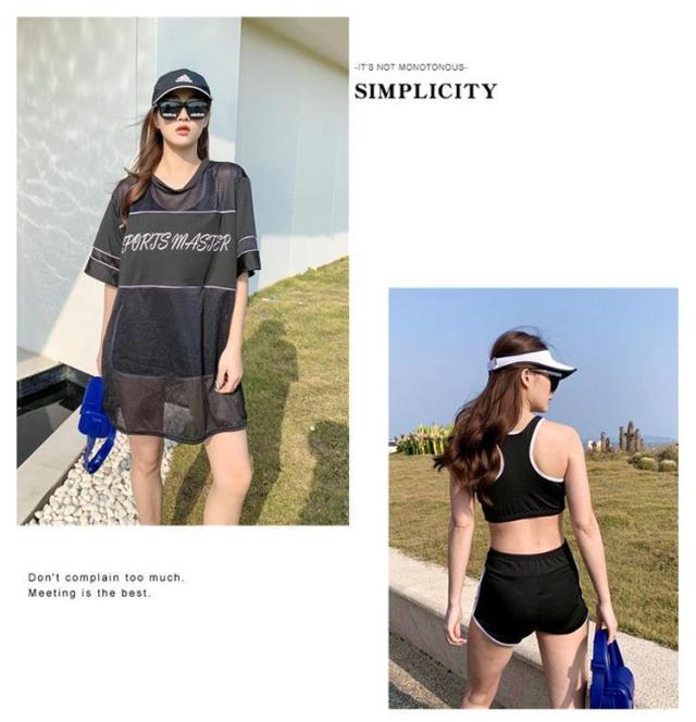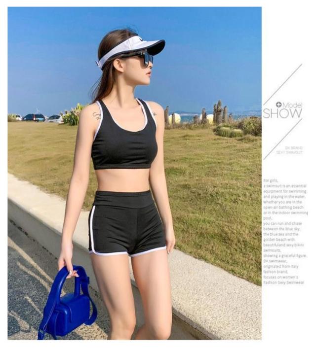 | セット内容:ラッシュガード、タンクトップ、ショートパンツ。 パッド付き、ストレスフリーのノンワイヤータンキニブラ (肩ひも調節不可/取り外し不可)、ハイウエストパンツで小腹もカバー、ラッシュガードはお肌を守ります。不快感なく脱着しやすいのとともに、スポーツ中に髪などが絡まる心配もなし! 派手になりすぎず、シンプル且つワンポイント、カラーで大人可愛いを演出するデザイン!また、気になる体型もさりげなく、カバーすることができます。 | |