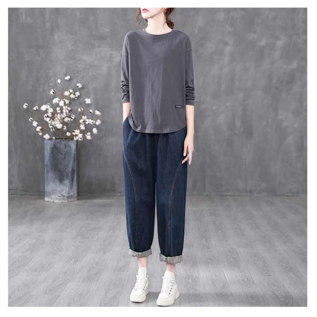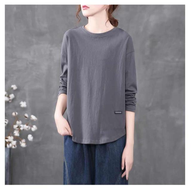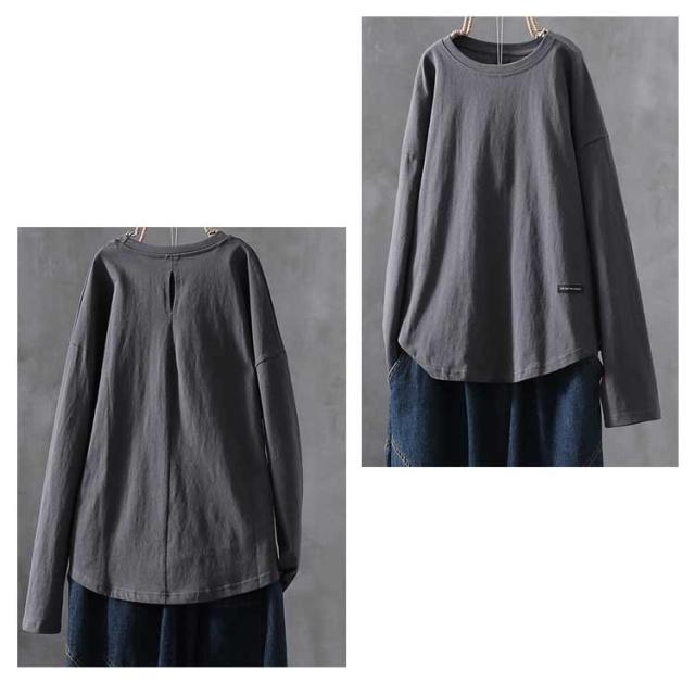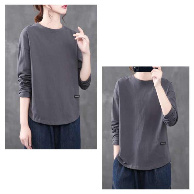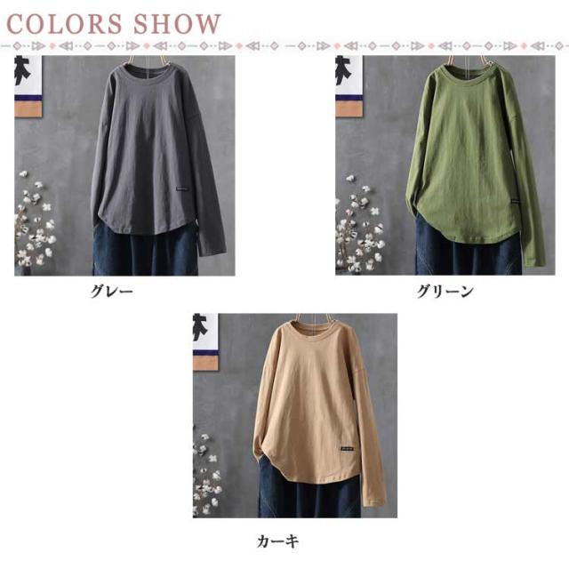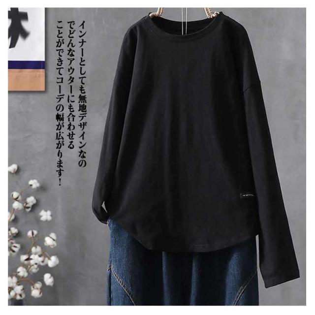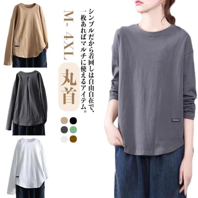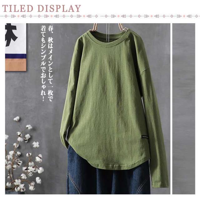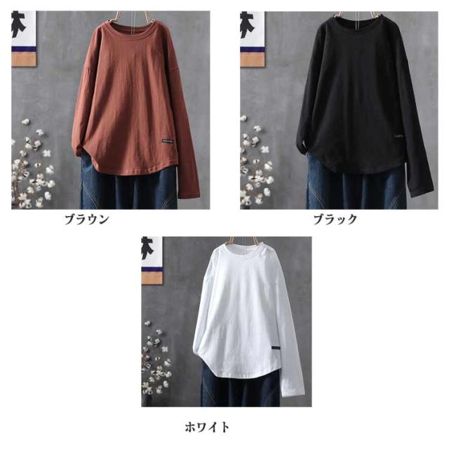 トップス ロングtシャツ ロンT 大人 ロンT レディース Tシャツ 丸首 クルーネック ゆったり カットソー オーバーサイズ 体型カバー 長袖 普段着 通学 リラックス 春 夏 秋 冬