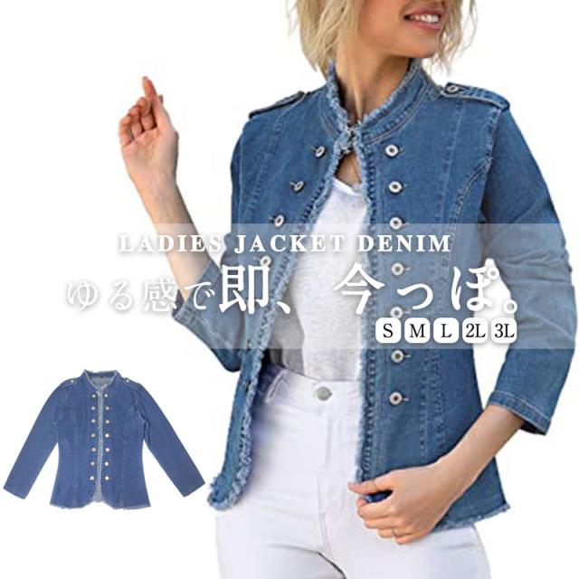 ポイント超超祭 デニムジャケット レディース 50代 Aライン ボタン 春秋 ショート丈ジャケット スプリングコート デニムコート 春コート カジュアル アウター