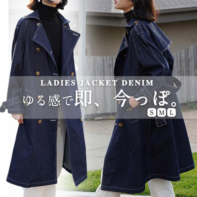 送料無料 デニムジャケット ジージャン ロング丈 Gジャン デニム ジャケット コート レディース アウター ウォッシュ加工 カジュアル ゆったり