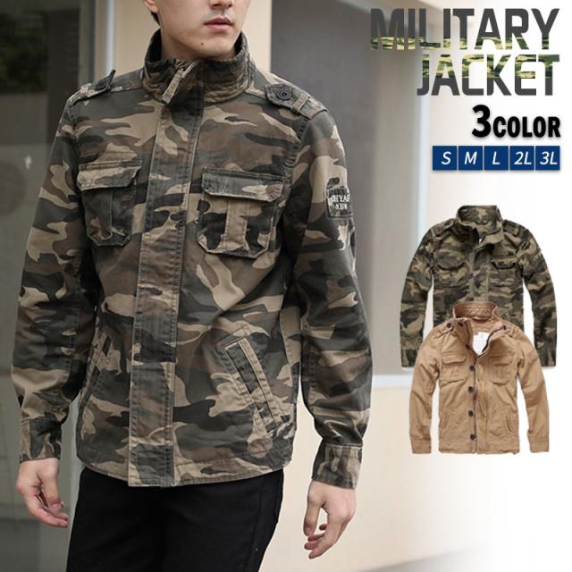爆売中 ミリタリージャケット メンズ ブルゾン ジャケット 迷彩 アウター 無地 ナイロンジャケット 撥水 アメカジ アウター 軍服 立ち襟
