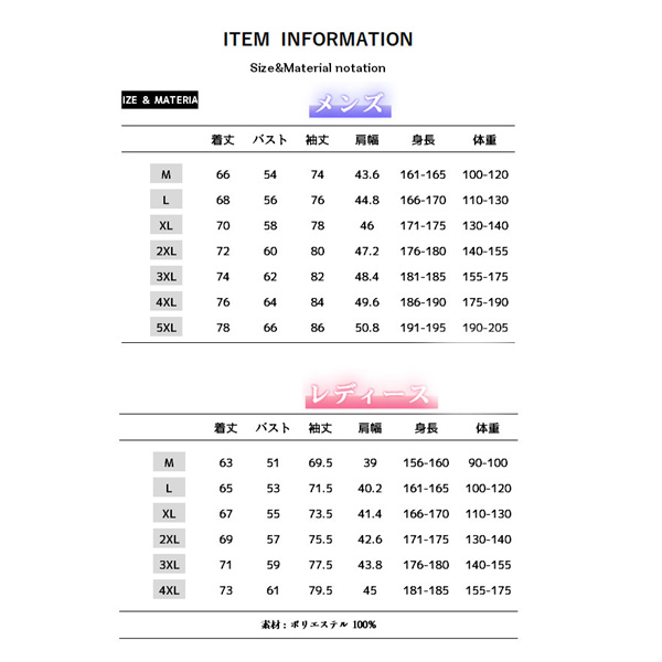 サイズ:/M/L/XL/2XL/3XL/4XL/5XL