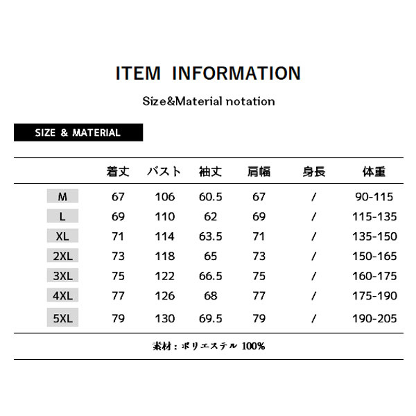 サイズ:/M/L/XL/2XL/3XL/4XL/5XL