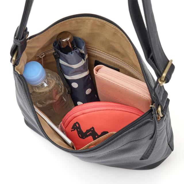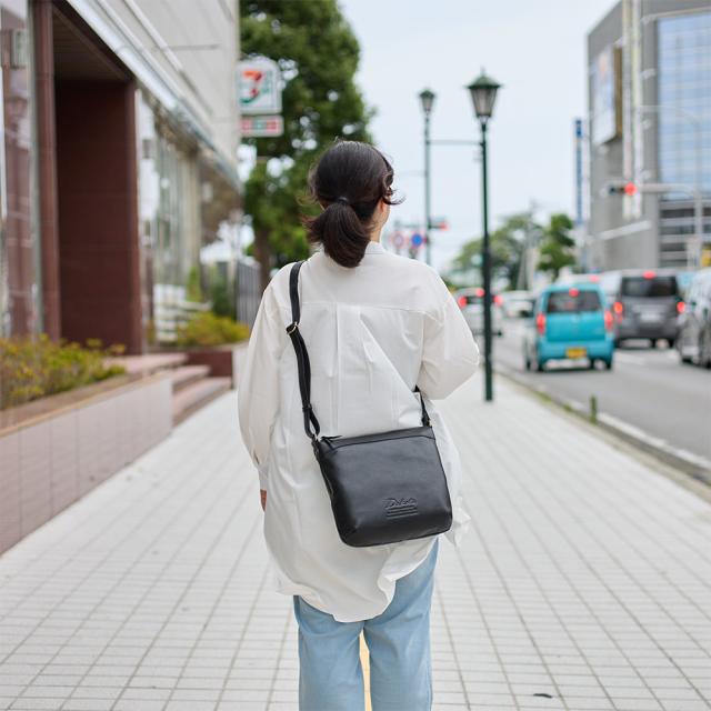 500mlペットボトルが縦でも横でも入る、日常使いにちょうどいいサイズのショルダーバッグ。柔らかで程よい幅なので、かさばらずに身体にフィットしてくれます。