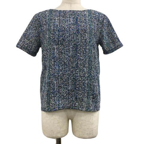 【中古】N.ナチュラルビューティーベーシック ブラウス カットソー プルオーバー ツイード調 半袖 M 紺 紫