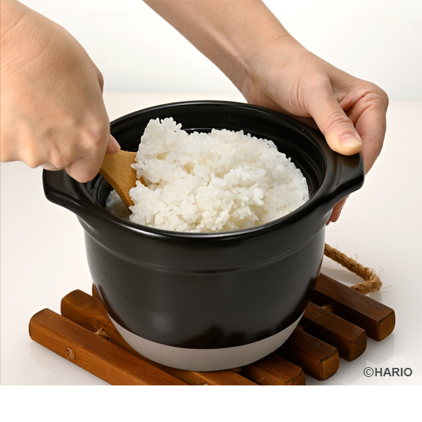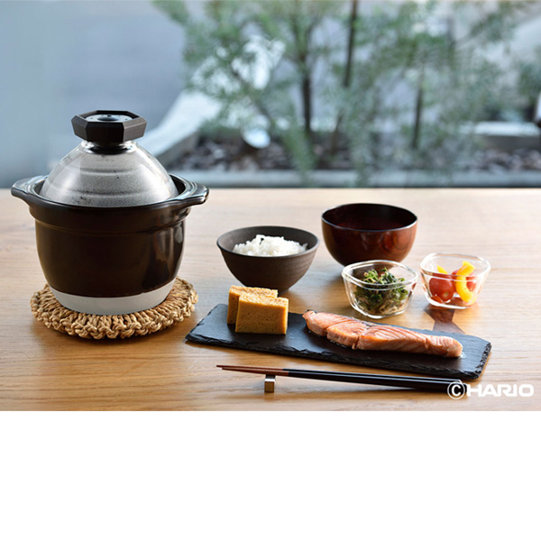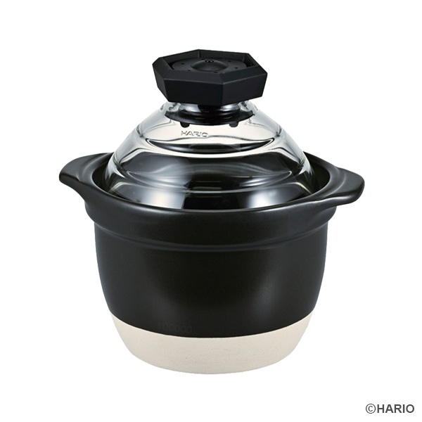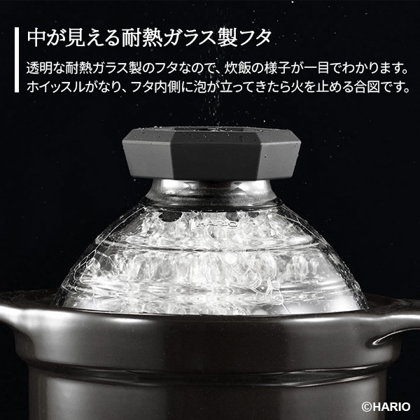 HARIO ハリオ フタがガラスのご飯釜 (1〜2合用) GNR-150-B-W | 直火専用 炊飯鍋 1〜2合用 炊飯 炊きあがりが見える 耐熱ガラスフタ 炊き上がりお知らせ 笛 耐熱陶器 ごはん釜 火加減 調節要らず フタが転がらない 日本製