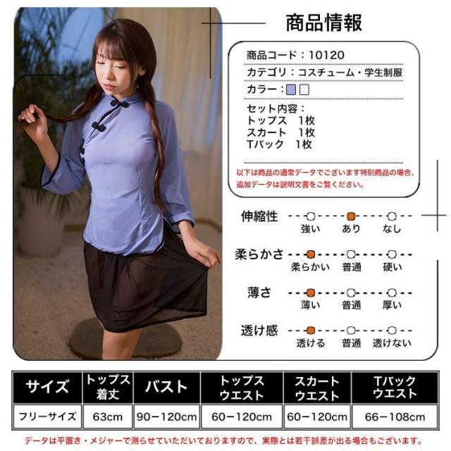 セクシー コスプレ セクシーコスチューム コスプレ衣装 仮装 チャイナ服 制服 学生 学生服 民国風 透け感 水色 ホワイト ポイント消化 プレゼント