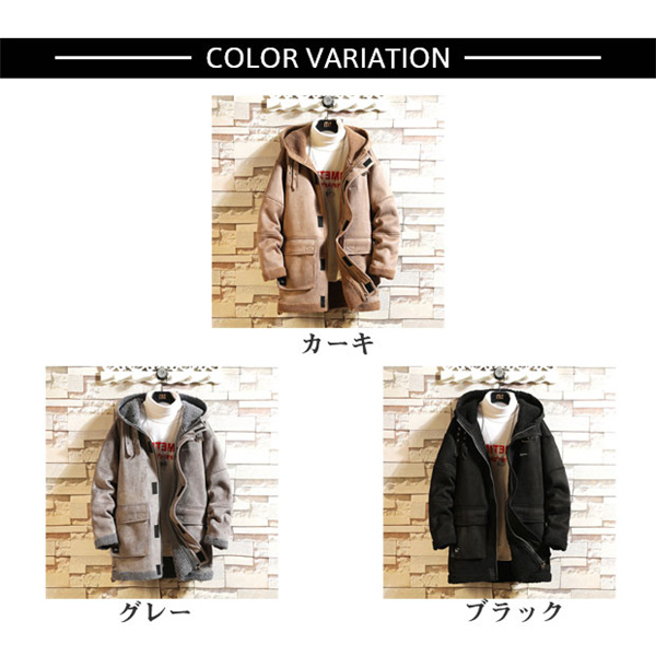 ムートンコート 毛皮コート メンズ ボアジャケット ミリタリー フード付き ロング ブルゾン スエード 防風 ライダース アウター 父の日 秋冬 あったか