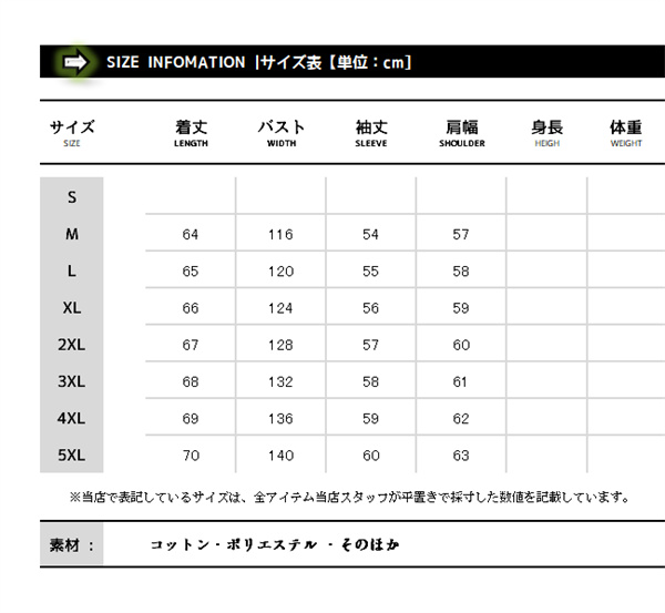 ※基本的に、XL・LL・2Lのサイズはすべて同じサイズです。