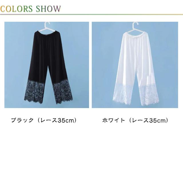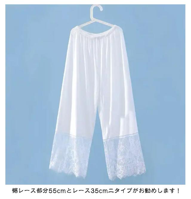 | 透け感が気になるワンピースやボトムスにオススメ! 吸汗速乾素材でベタつきにくく、汗による服と肌のベタつきを軽減します。 チラ見せOKな可愛いレースです。 ウエスト部分は細めのゴム仕様なので着膨れしません。 万が一チラ見えしたときにも下着っぽさが出ず、アウターの洋服の邪魔をしません。 裾レース部分55cmとレース35cm二タイプがお勧めします! | |