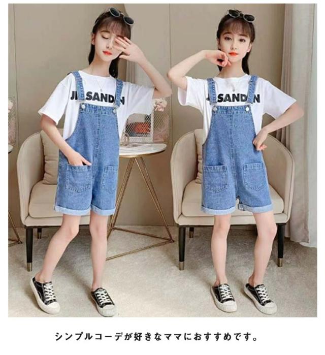 ボトムス ショートパンツ 女の子 男の子 オーバーオール デニムオーバーオール ポケット 子供服 半袖 tシャツ セットアップ オーバーオール キッズ デニムサロペット 2点セット オールインワン デニム 韓国子供服 お洒落 110cm 120cm 130cm 140cm 150cm 160cm 170cm