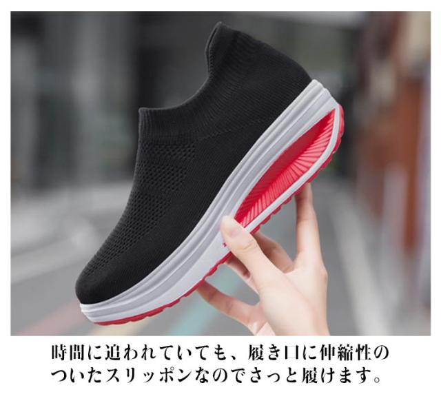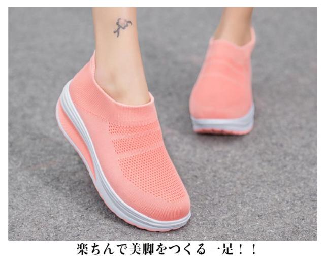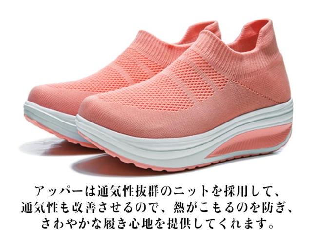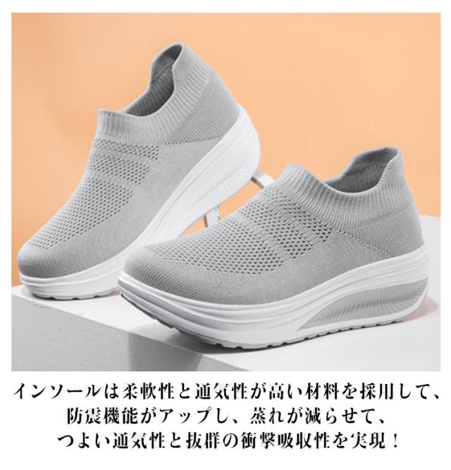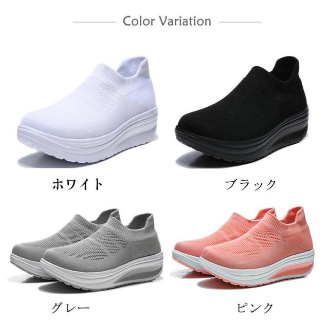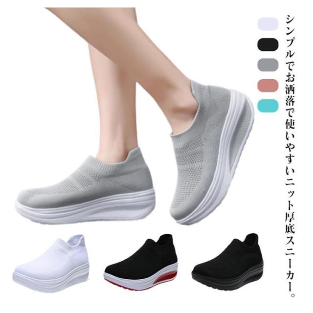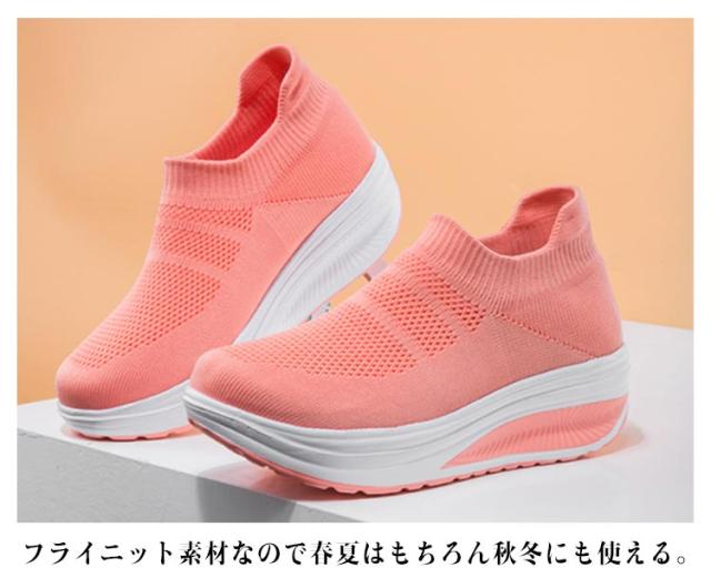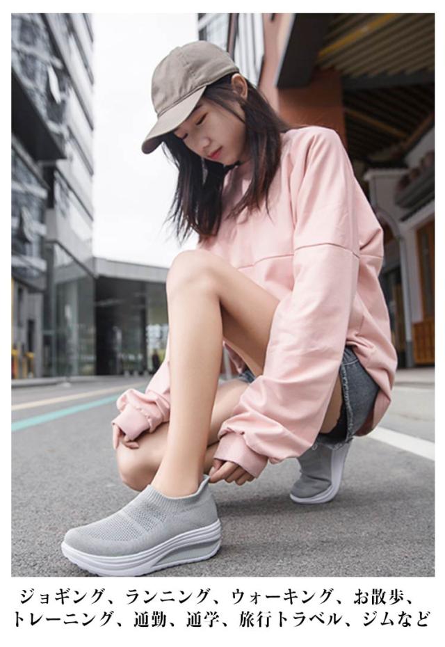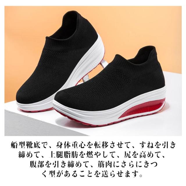 | 楽ちんで美脚をつくる一足!! シンプルでお洒落で使いやすいニット厚底スニーカー。 時間に追われていても、履き口に伸縮性のついたスリッポンなのでさっと履けます。 船型靴底で、身体重心を転移させて、すねを引き締めて、上腿脂肪を燃やして、尻を高めて、腹部を引き締めて、筋肉にさらにきつく型があることを送らせます。 アッパーは通気性抜群のニットを採用して、通気性も改善させるので、熱がこもるのを防ぎ、さわやかな履き心地を提供してくれます。 インソールは柔軟性と通気性が高い材料を採用して、防震機能がアップし、蒸れが減らせて、つよい通気性と抜群の衝撃吸収性を実現! フライニット素材なので春夏はもちろん秋冬にも使える。 ジョギング、ランニング、ウォーキング、お散歩、トレーニング、通勤、通学、旅行トラベル、ジムなど 。スポーツシーンだけでなく、通勤や通学、普段履き、ナースシューズとしてもカジュアルなコーディネートをお楽しみいただけます。 | |