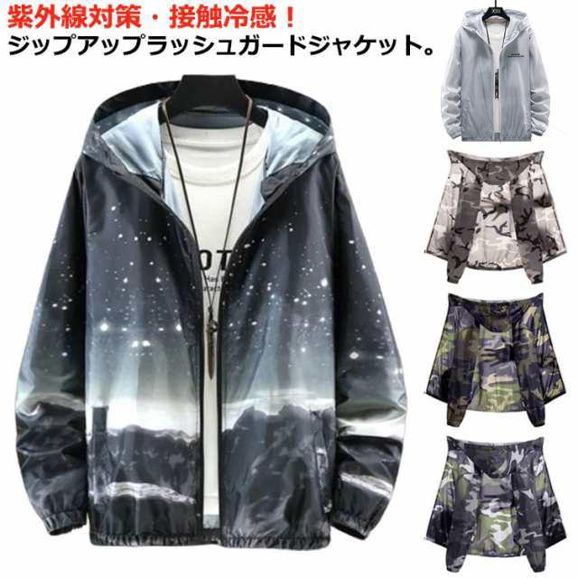 ラッシュガード 迷彩 ジップアップ 紫外線対策 冷房対策 夏用 UVカット ジャケット スタジャン 日焼け防止 ラッシュガード 接触冷感 ひんやり ジャケット ブルゾン カモフラ 無地 薄手 軽量 ジャンパー 吸汗速乾 無地 アウトドア 長袖