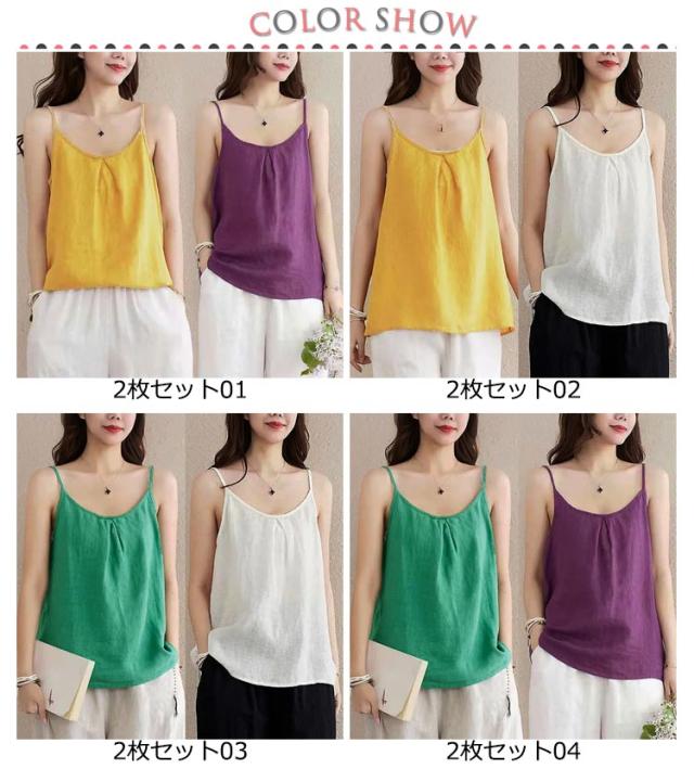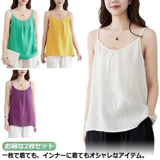 キャミソール キャミソール カップなし リネン レイヤード タンクトップ 2枚セット ナチュラル レディース インナー さらさら レイヤードタンクトップ タンクトップ ナチュラル インナー トップス通気性 サラサラ 快適 部屋着 肌着 綿麻 ゆったり 体型カバー