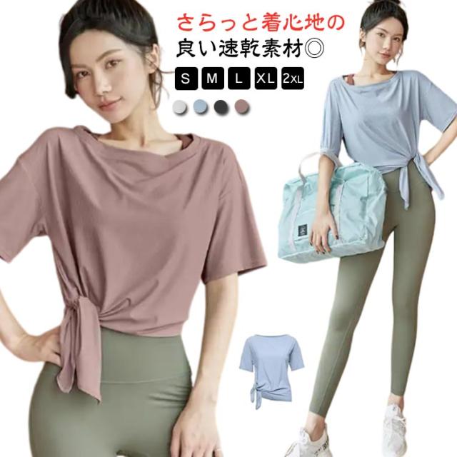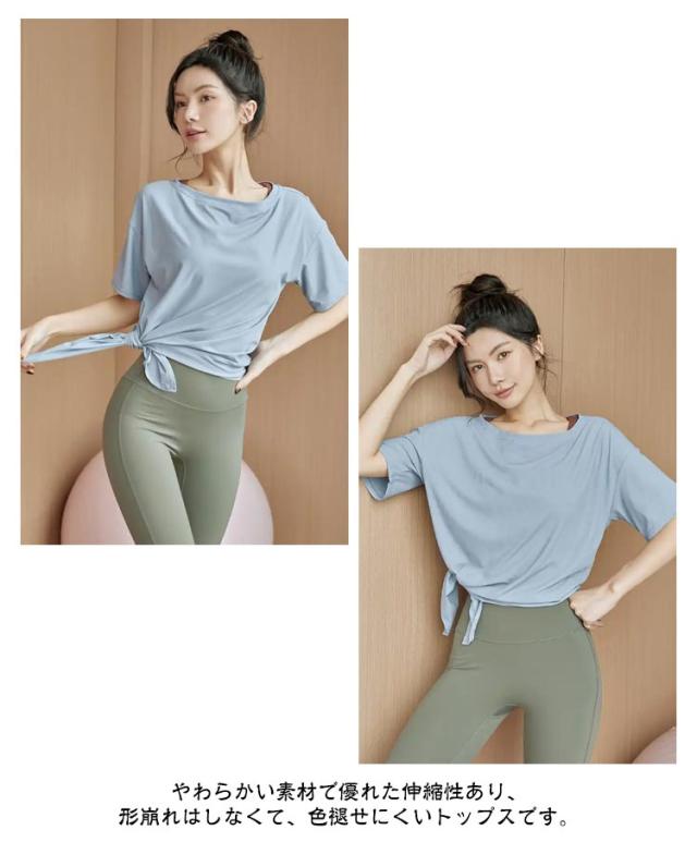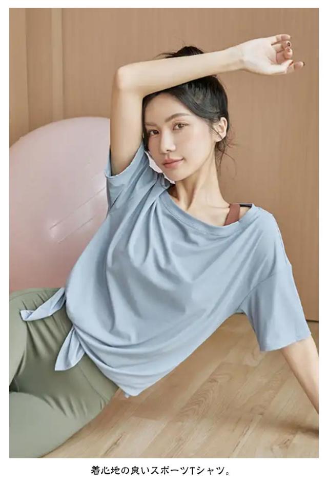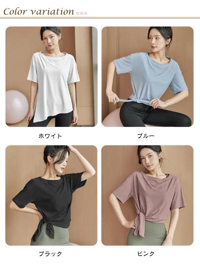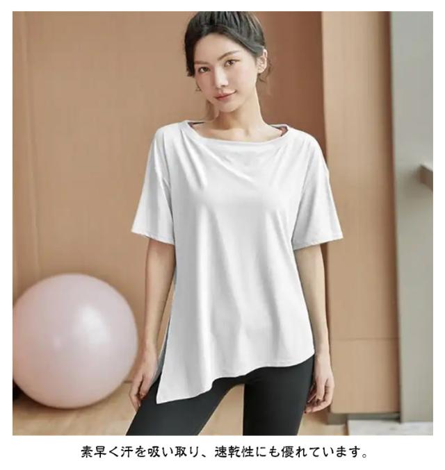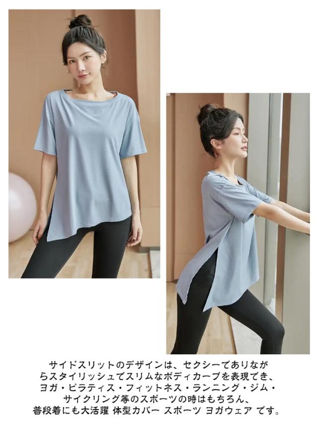 レディーストップス ピラティス ヨガウェア ヨガtシャツ ストレッチ ウェア 冷感 半袖 ゆったり スリット 速乾 体型カバー 薄手 伸縮性 運動着 伸縮性 レディーストップス おしゃれ スポーツ フィットネス ジムウェア かわいい