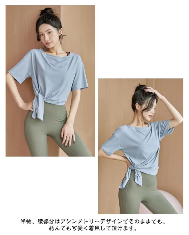 | さらっと着心地の良い速乾素材◎着心地の良いスポーツTシャツ。 半袖、腰部分はアシンメトリーデザインでそのままでも、結んでも可愛く着用して頂けます。 素早く汗を吸い取り、速乾性にも優れています。 やわらかい素材で優れた伸縮性あり、形崩れはしなくて、色褪せにくいトップスです。 サイドスリットのデザインは、セクシーでありながらスタイリッシュでスリムなボディカーブを表現でき、ヨガ・ピラティス・フィットネス・ランニング・ジム・サイクリング等のスポーツの時はもちろん、普段着にも大活躍 体型カバー スポーツ ヨガウェア です。 | |