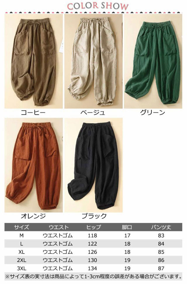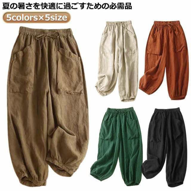 レディース バルーンパンツ 夏 レディース 夏 レディース サルエルパンツ 涼しい リネン ゆったり レディース パンツ 綿麻パンツ きれいめ きれいめ 夏 コクーンパンツ 春夏 九分丈 パンツ ウェストゴム 大きいサイズ ギャザー きれいめ 体型カバー 部屋着