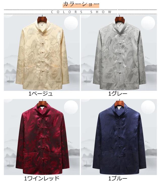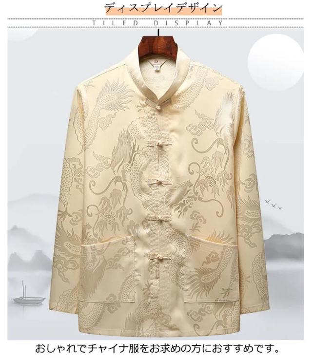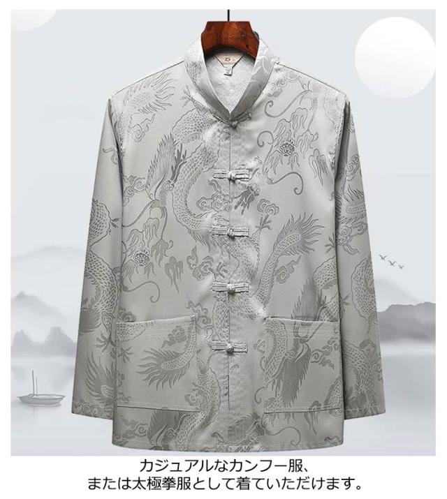 男性用 大きいサイズ 竜 チャイナシャツ メンズ チャイナ服 普段着 カジュアルシャツ 中華風 漢服 スタンドカラー カンフー服 カンフーシャツ 立ち襟 チャイナボタン 涼しい おしゃれ 男性 唐装 トップス 太極拳服 おしゃれ 中華風 中華服 演出服 太極拳服