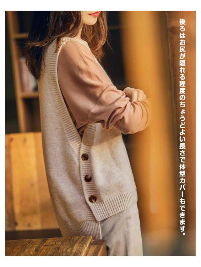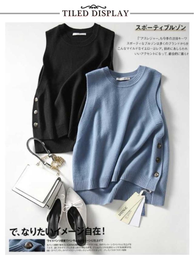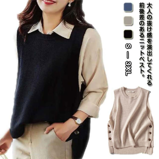 | 大人の抜け感を演出してくれる前後差のあるニットベスト。 様々なシーンで活躍する、着回し力抜群のノースリーブニットトップスです。 後ろはお尻が隠れる程度のちょうどよい長さで体型カバーもできます。 両サイドのボタンデザインがスタイルアップ効果も! なラウンドネックのデザインなので、襟付きのトップスでコーデするだけで上品なかわいらしさを演出できます。 | |