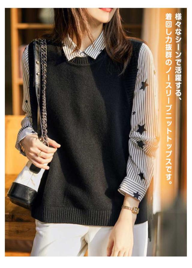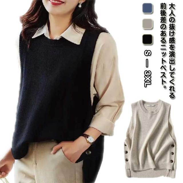 無地 レイヤード 春 ニットベスト トップス ベスト 大きいサイズ 重ね着 ノースリーブ レイヤード プルオーバー 袖なし レディース セーター ニット カジュアル ゆったり ニット シンプル 大人可愛い オーバーサイズ