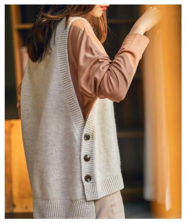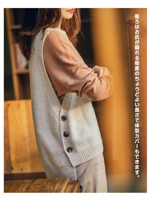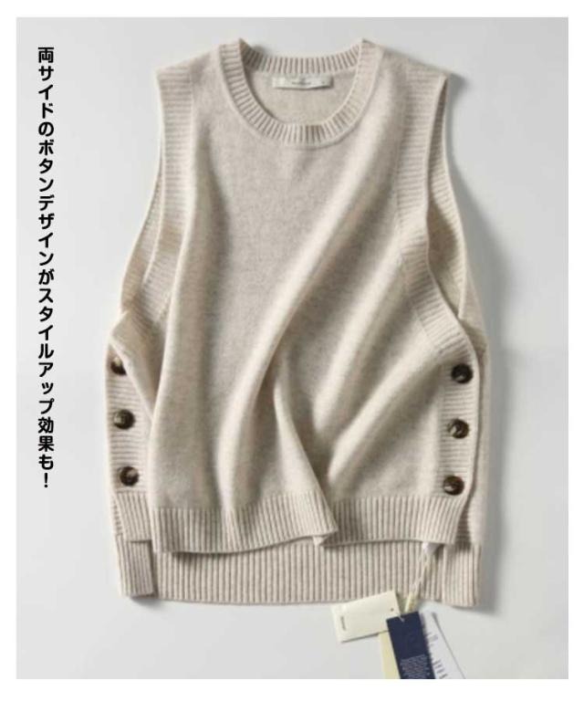 | 大人の抜け感を演出してくれる前後差のあるニットベスト。 様々なシーンで活躍する、着回し力抜群のノースリーブニットトップスです。 後ろはお尻が隠れる程度のちょうどよい長さで体型カバーもできます。 両サイドのボタンデザインがスタイルアップ効果も! なラウンドネックのデザインなので、襟付きのトップスでコーデするだけで上品なかわいらしさを演出できます。 | |