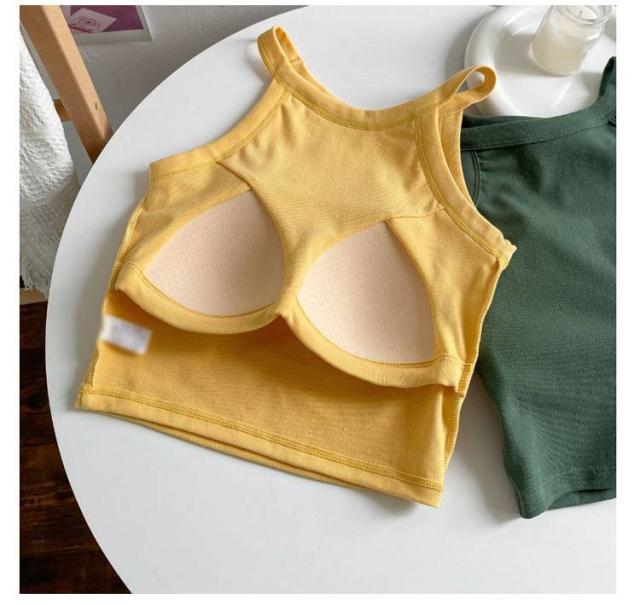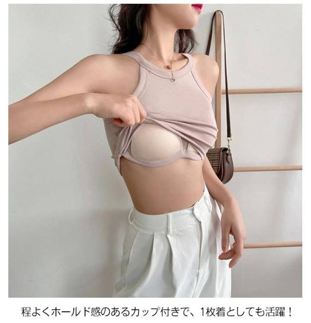 カップ付き タンクトップ 無地 トップス ブラカップ ホルターネックブラ レイヤード レディース ホルターネック ノースリーブ カジュアル キャミソール インナー 無地 ニット カップ付き 重ね着 おしゃれ スポーツ カットソー 春夏
