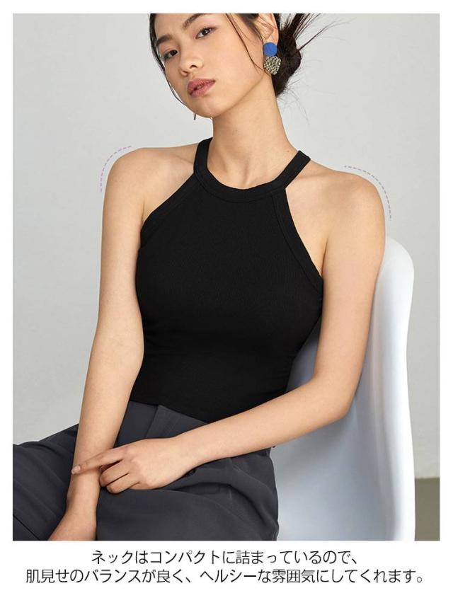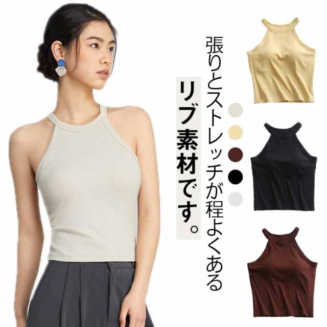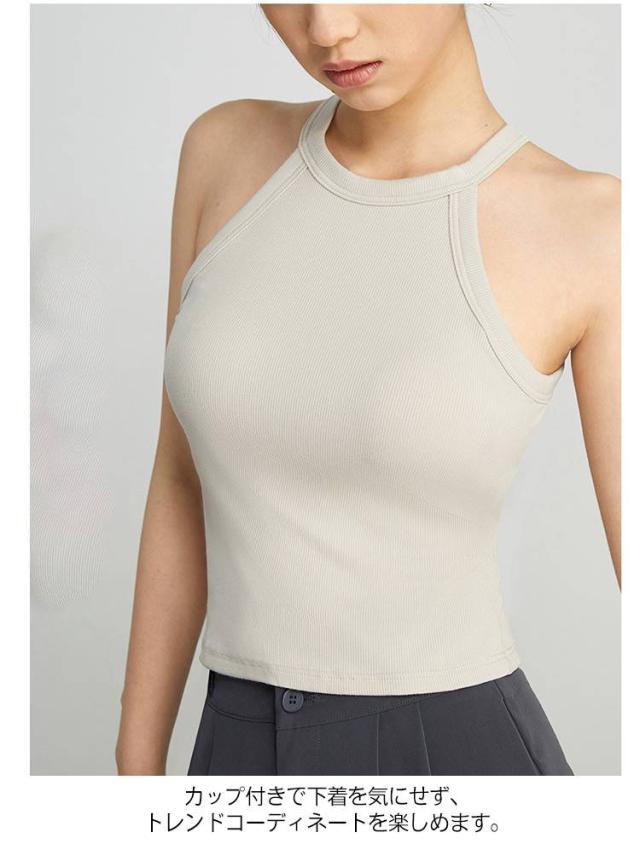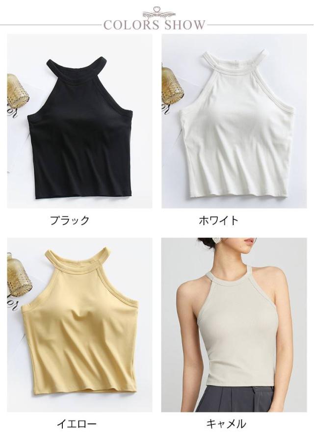 タンクトップ キャミソール レディース カップ付き ブラトップ トップス カップ付き ブラカップ ノースリーブ ホルターネック 無地 カジュアル リブ生地 インナー ホルターネックブラ ニット レイヤード 重ね着 おしゃれ スポーツ カットソー 春夏