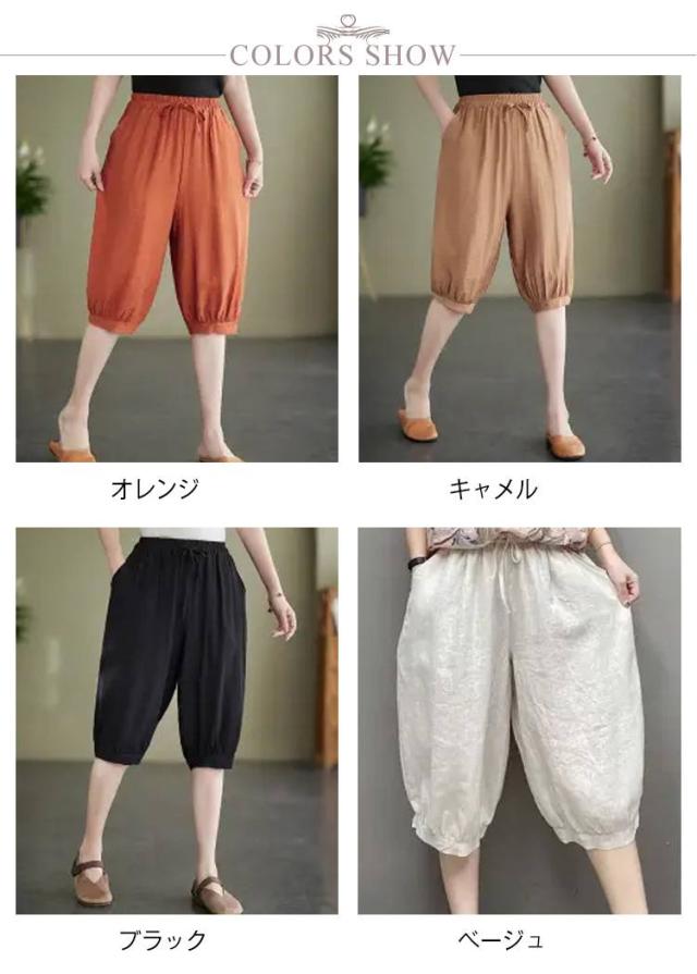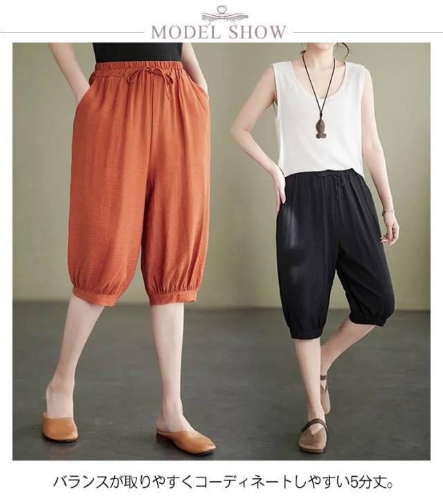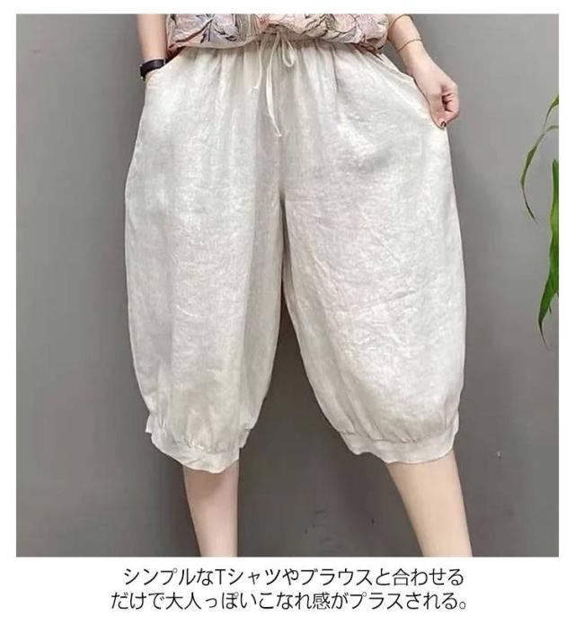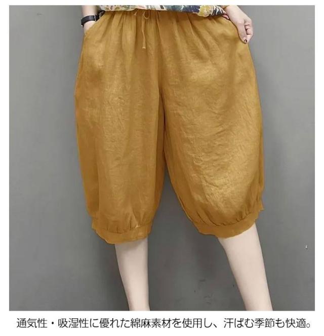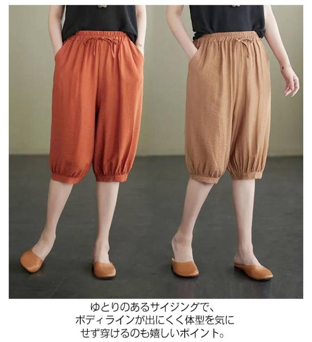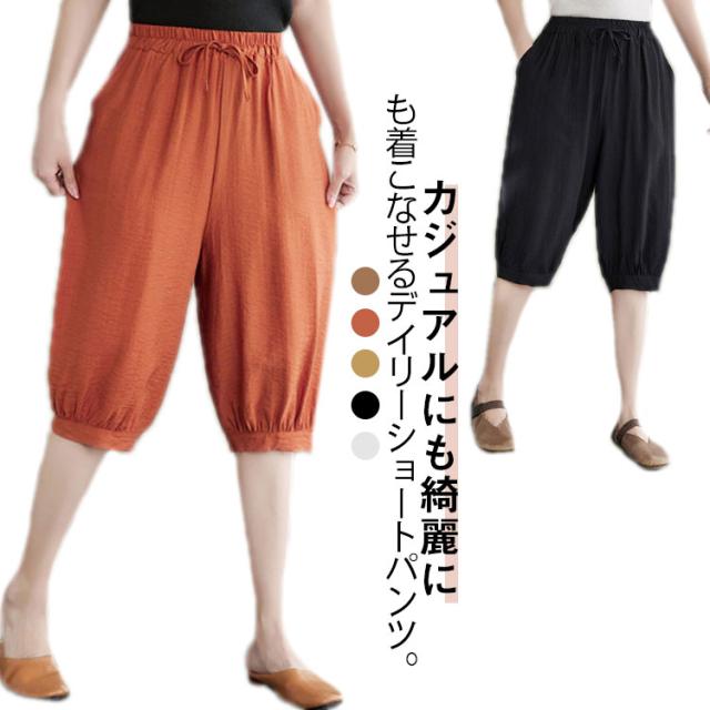 半ズボン ハーフパンツ バルーンパンツ 綿麻 大きいサイズ リネン ガウチョパンツ 5分丈 ワイドパンツ ショートパンツ 膝丈 ハーフパンツ 短パン パンツ ウエストゴム サマーパンツ 五分丈パンツ レディース 春 夏 カジュアル 体型カバー