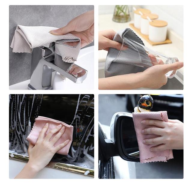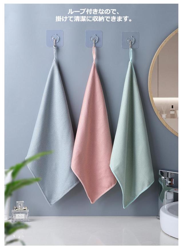 | キッチンから洗面台掃除までこれ1つ!ガラス・鏡ピカッとクロス。5枚セット。水アカ、鏡汚れ、キッチンの蛇口など様々な場所の汚れをこれ1枚でピカッと綺麗に! 拭き跡が残らず、マイクロファイバー繊維で隅々まで汚れをかき取ります。 ループ付きなので、掛けて清潔に収納できます。 | |