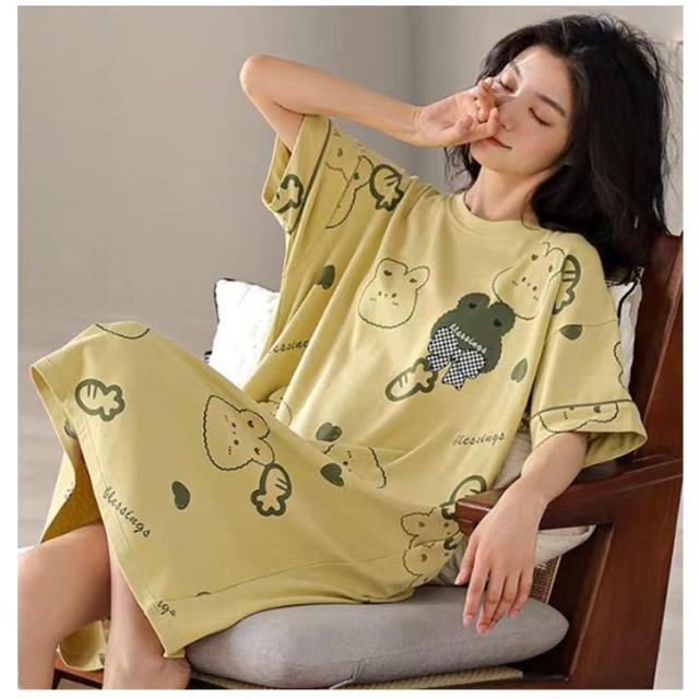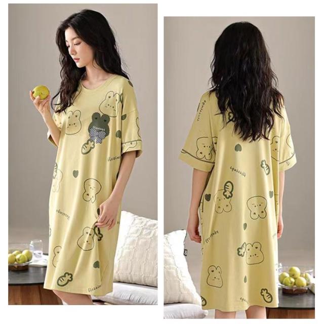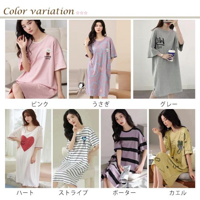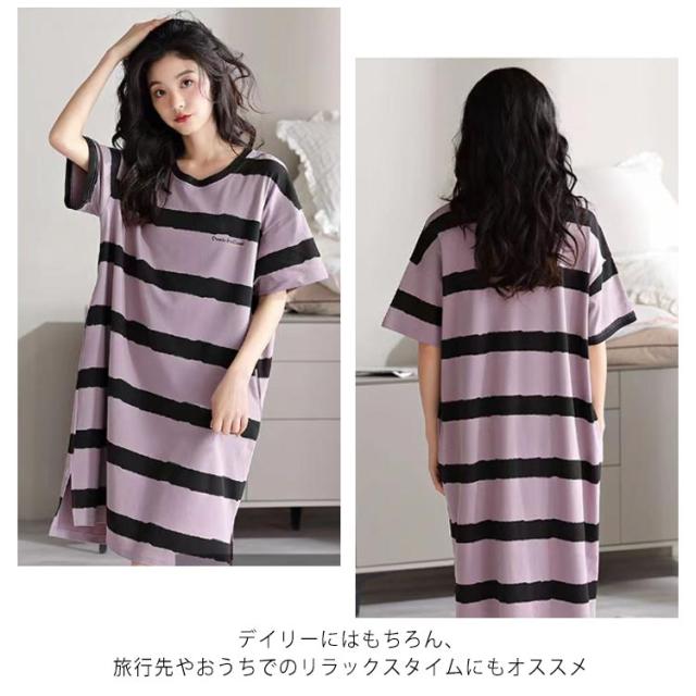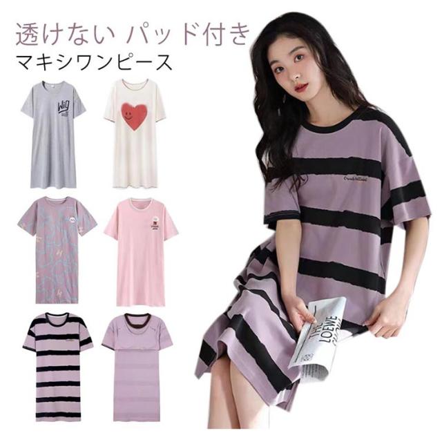 かわいい パジャマ ネグリジェ ワンピース 夏 カップ付き ルームウェア 着痩せ Aライン 透けない ボーダー柄 ロング 部屋着 寝間着 女性 ストレッチ 通気性 カットソー 涼しい カップ付き 吸水性 シンプル