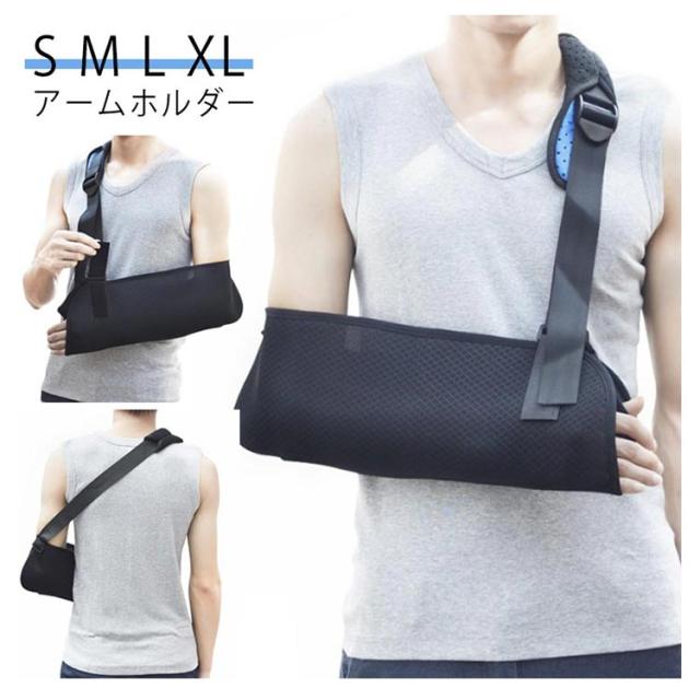 骨折 腕吊り サポーター 腕用 子供用 アームホルダー アームリーダー 大人用 アームスリング 三角巾 腕つり 子供用 ポケット付 アームホルダー アームホルダー サポーター 左右兼用 バンド ブラック 腕