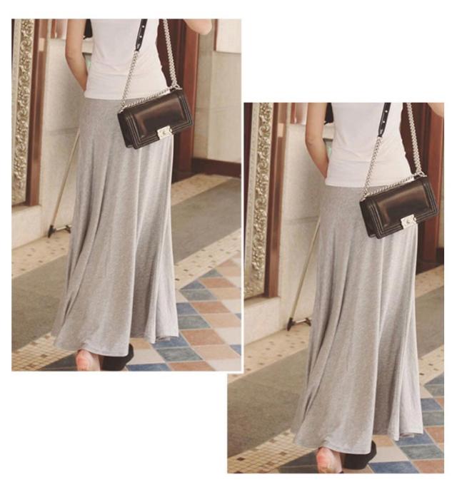 | モデール素材で毎日着たい。シンプルながらも使いまわし自由自在な万能マキシスカートが新登場。 ふんわりフレアシルエットが大人上品で可愛い。下半身をすっぽり包み込まれるマキシ丈スカート、体型カバーも◎ ヒップアップ効果抜群のフレアシルエットが女性の魅力を演出してくれます。 ウエストゴムがしっかりめですが、窮屈感はなく、全体的に程よいゆとりがあり丁度良いサイズ感で着られました。 マキシ丈で長めデザインがとっても素敵で、広がり過ぎずふわりと可愛く着こなせました。 これだけで、アンニュイな雰囲気 春に似合う無地マキシスカート。 | |