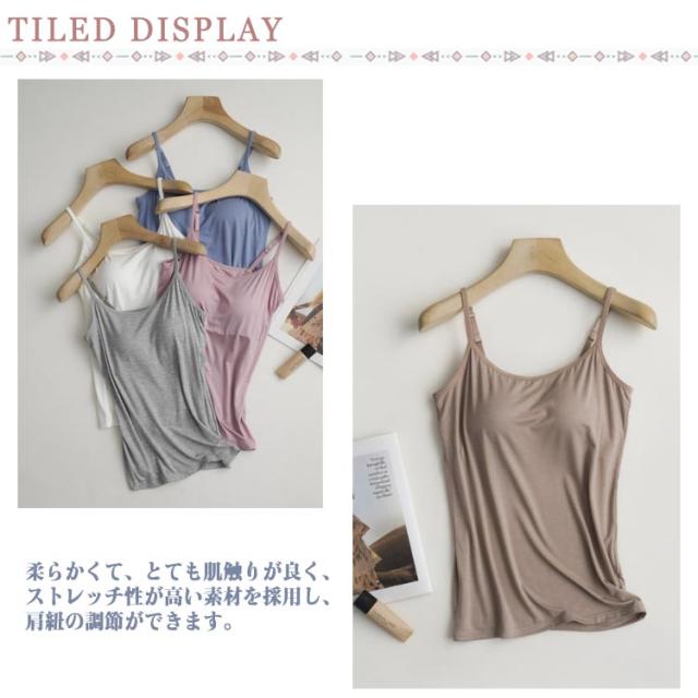 | 薄手でひんやり夏にピッタリのカップ付きキャミソール! カップ部分はバストを下から持ち上げてホールドし、自然なバストラインを作り出す。 柔らかくて、とても肌触りが良く、ストレッチ性が高い素材を採用し、肩紐の調節ができます。 肌に直接触れるインナーとして締め付け感が少なく伸縮性にも優れていて肌触りがサラサラとしているの着心地は嬉しいポイント。 ノンワイヤーの楽ちんなブラトップで普段着や就寝用のインナー、ヨガやダンス、フィットネスなどジムトレーニングのスポーツウェアとしても最適。 | |