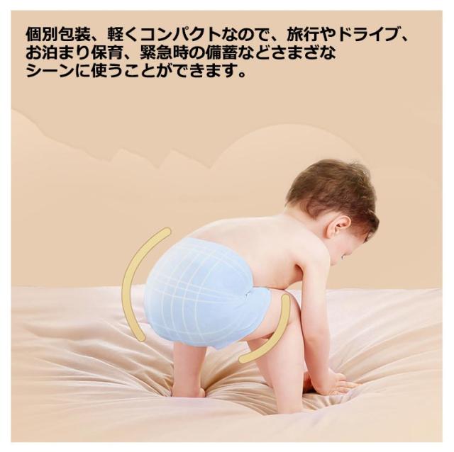 | キッズ使い捨てパンツ5枚セット 緊急避難時の衛生対策や、旅行の際にも便利です。 EO滅菌採用、安心安全です。 通気性、吸収性にすぐれています。 使い捨て前提に作られていますが、綿素材なので洗濯も可能です。 個別包装、軽くコンパクトなので、旅行やドライブ、お泊まり保育、緊急時の備蓄などさまざなシーンに使うことができます。 | |