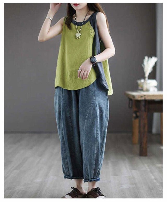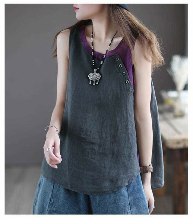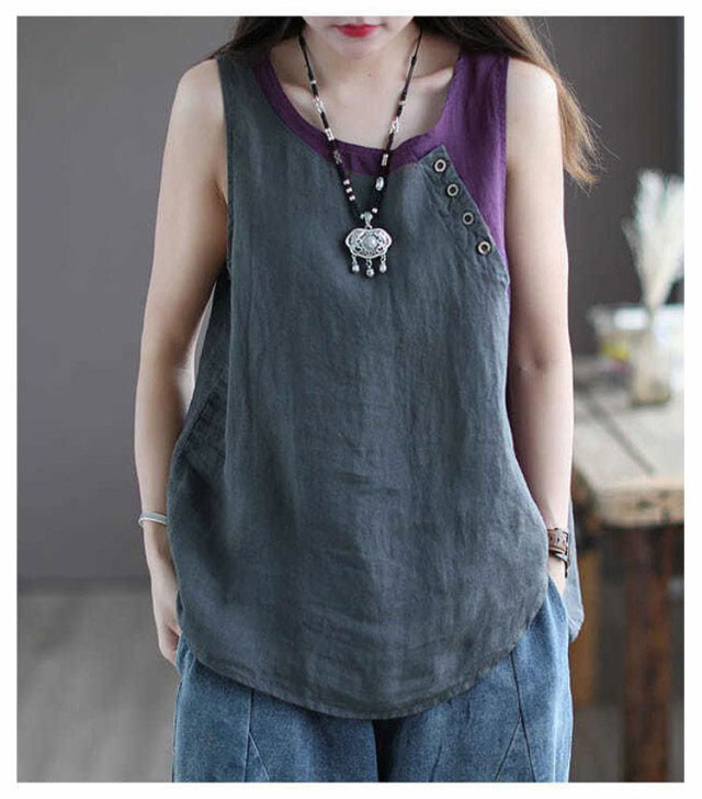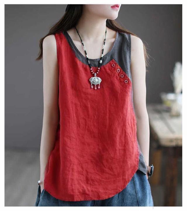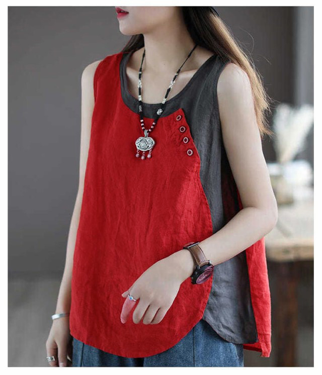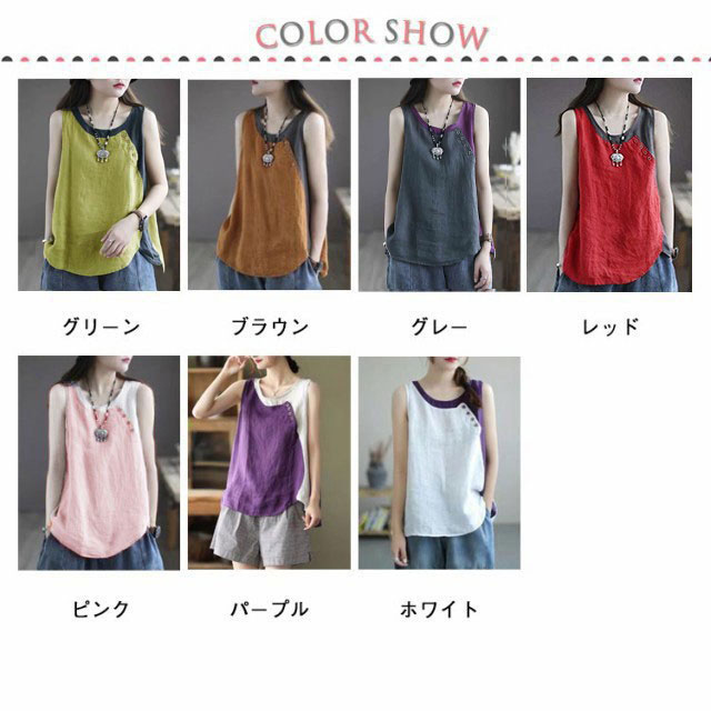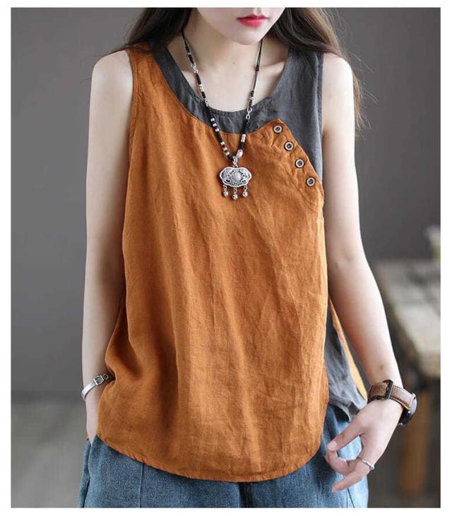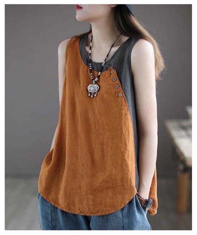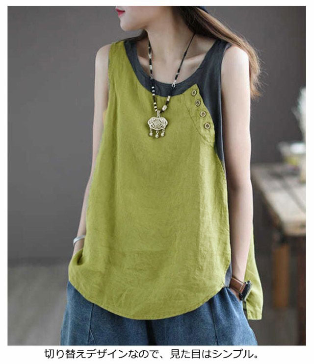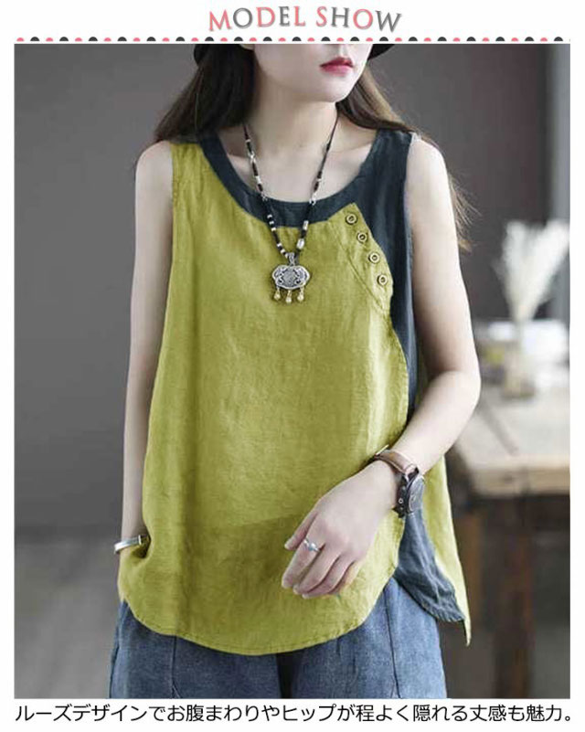 綿麻トップス オーバーサイズ 綿麻 タンクトップ 配色 シンプル タンクトップ タンクトップ ブラウス 切り替え レディース タンク 薄手 サマータンク 無地 ボタン付き インナー ノースリーブ tシャツ 肌着 下着 無地 ブラウス 綿麻 エレガント カジュアル レディース