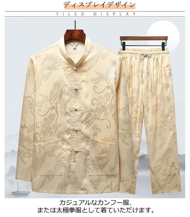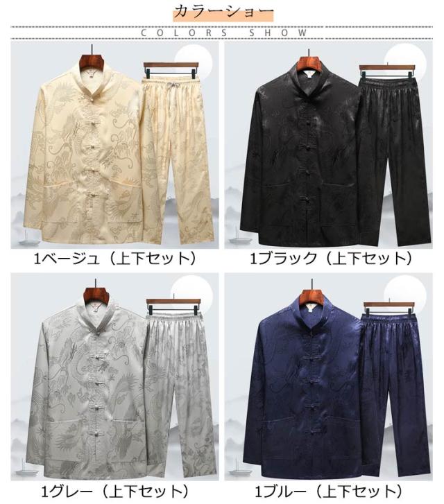 チャイナ服 太極拳服 ロングパンツ メンズ チャイナボタン チャイナ服 チャイナシャツ スタンドカラー 長袖シャツ 上下セット カンフー服 男性用 セットアップ 中華風 立ち襟 涼しい 唐装 男性用 普段着 漢服 中華風 中華服 演出服 春 夏 秋 送料無料