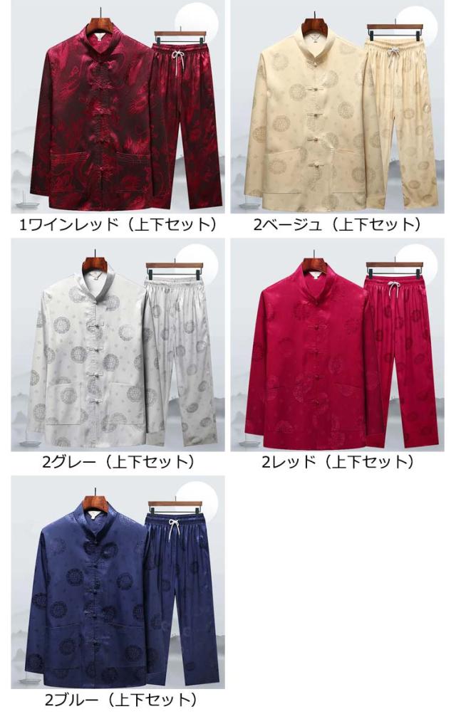| 色 | 1ベージュ(上下セット) 1ブラック(上下セット) 1グレー(上下セット) 1ブルー(上下セット) 1ワインレッド(上下セット) 2ベージュ(上下セット) 2グレー(上下セット) 2レッド(上下セット) 2ブルー(上下セット) |
