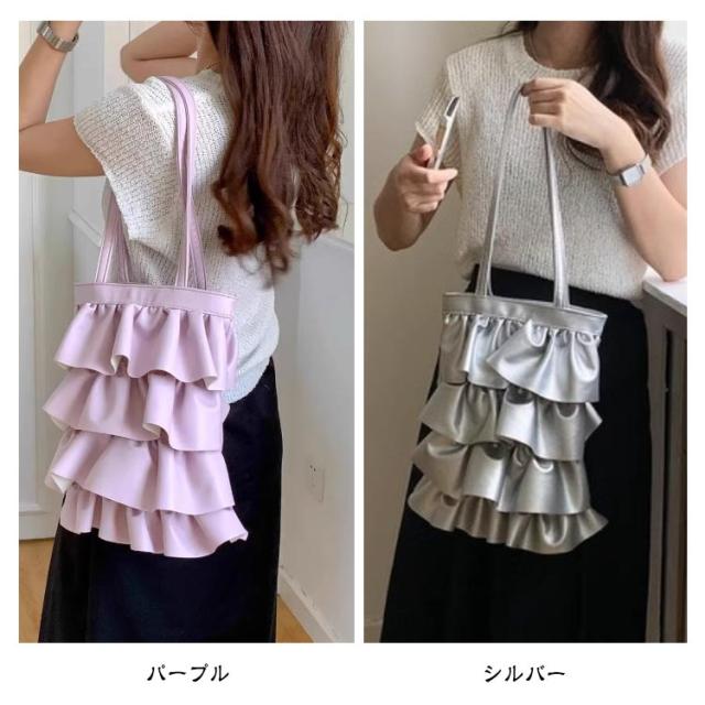フリル フリル トートバッグ レディース かわいい ショルダー バッグ ティアードバッグ 肩掛け フリルバッグ ショルダーバッグ プリーツ 韓国 おしゃれ 可愛い ハンドバッグ 通勤 通学 オフィス 仕事 高見え 大容量 手提げ