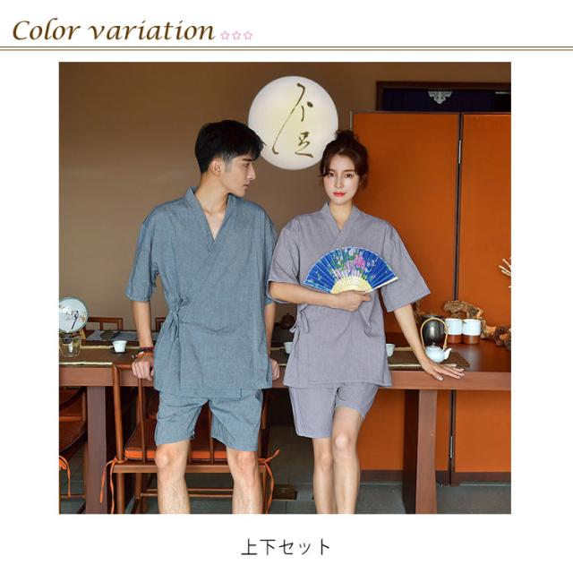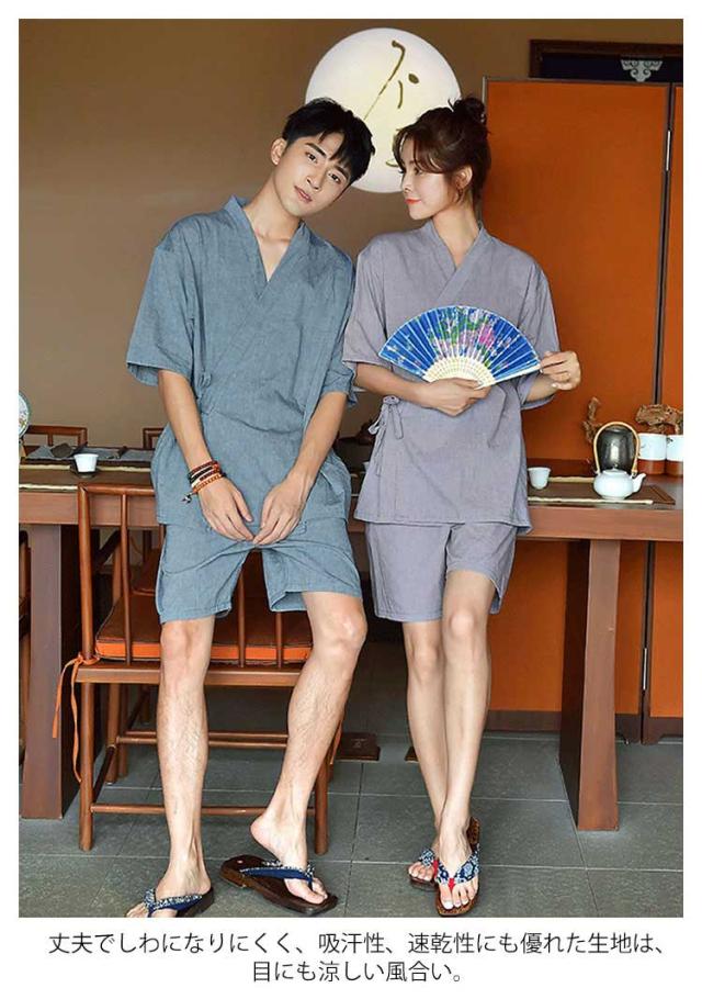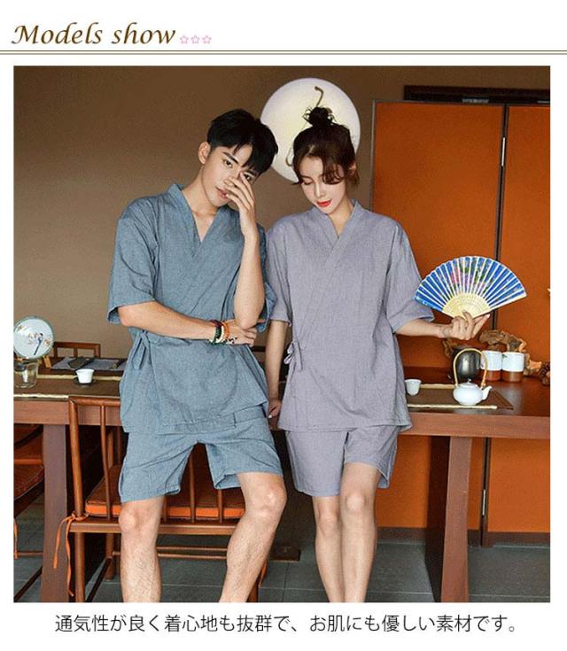 バスローブ メンズ 夫婦 ナイトウェア 綿 お風呂上り パジャマ セパレート ガウン 甚平 和風 半袖 ルームウェア 前開き 上下セット 浴衣 和服 無地 純色 甚平 肌に優しい スパ サウナ 介護 温泉着 ホテル 男女兼用